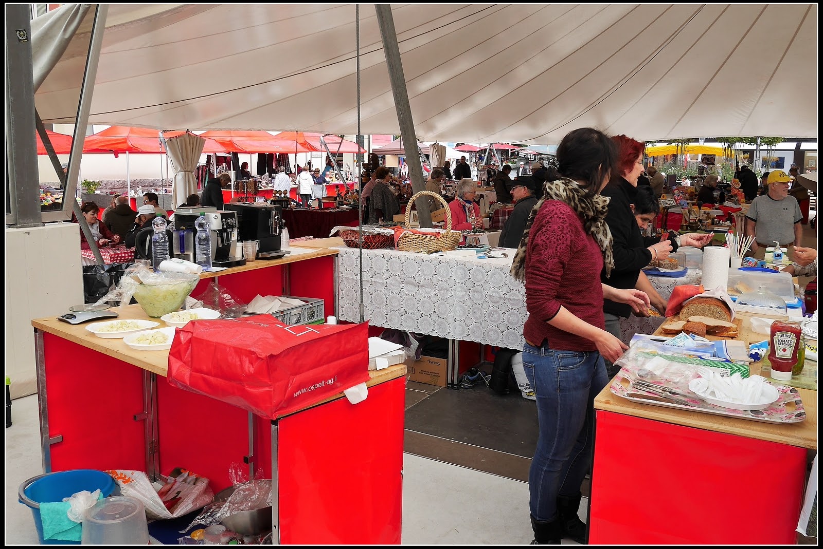 步行街、市集白色帳篷、市政廳
