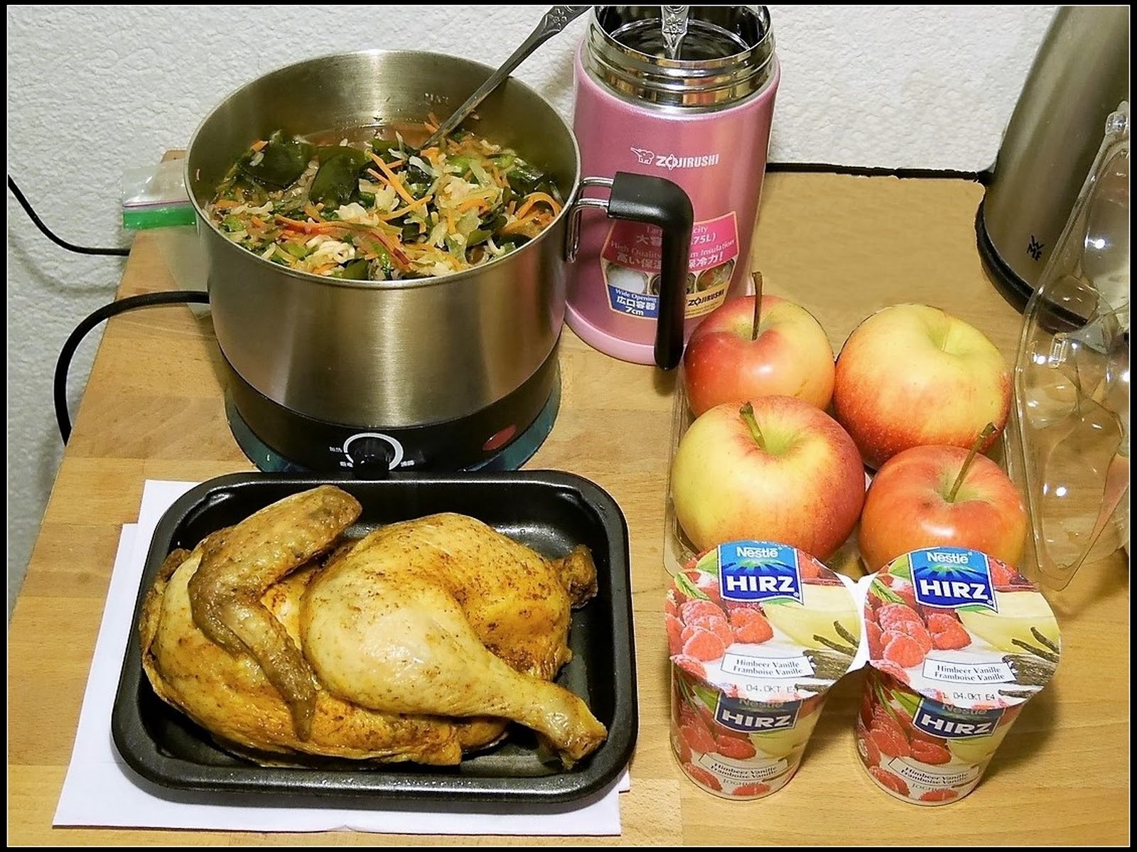 熱熱烤雞很香,但外皮抹太多鹽太鹹了,要去皮才能吃,半隻 7.9CHF