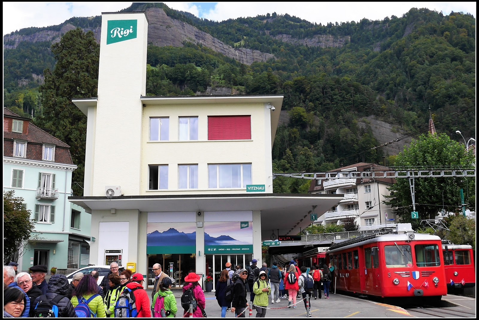 從這站下船可搭纜車上 Rigi Kaltbad-First站 再換齒軌車上瑞吉山