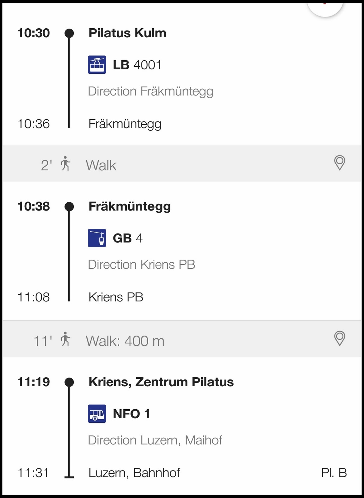 Kriens 纜車終點站,出站往右走,指標 Luzern