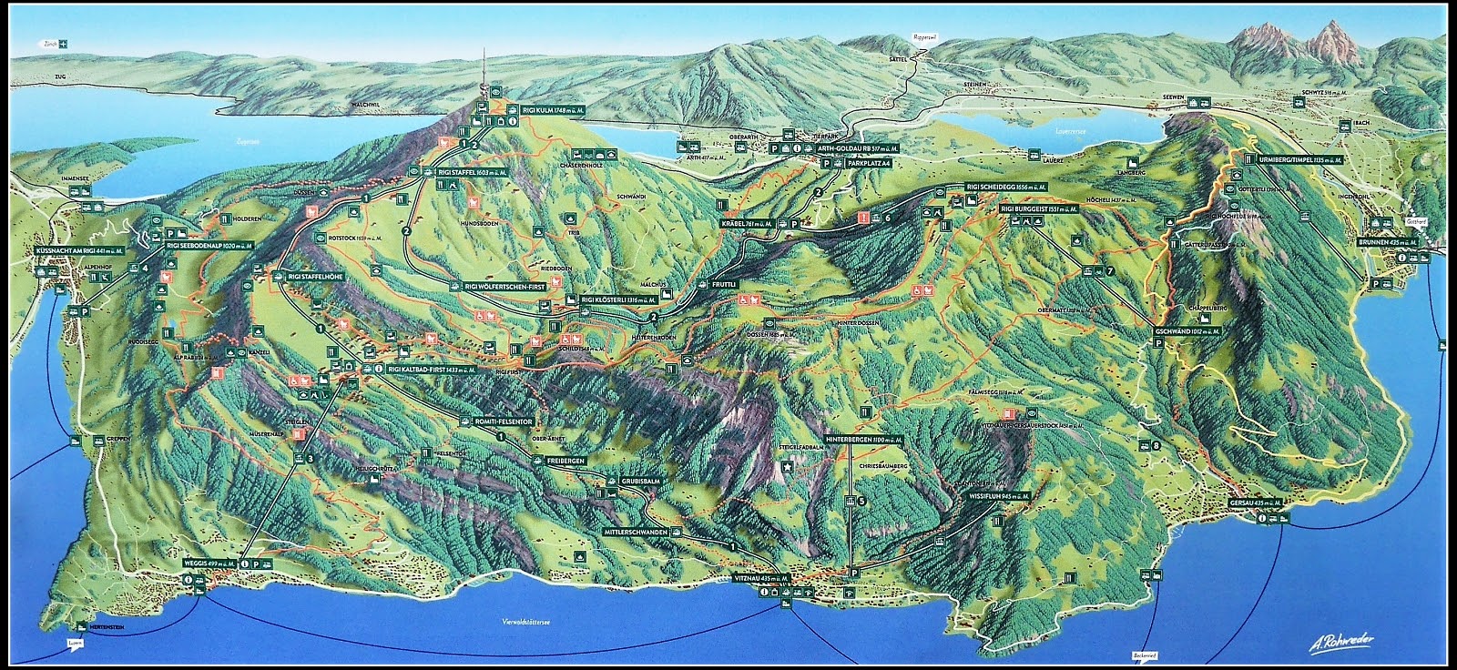 琉森渡輪往 Vitznau菲茨瑙 再換齒軌列車往 Rigi Kulm瑞吉山